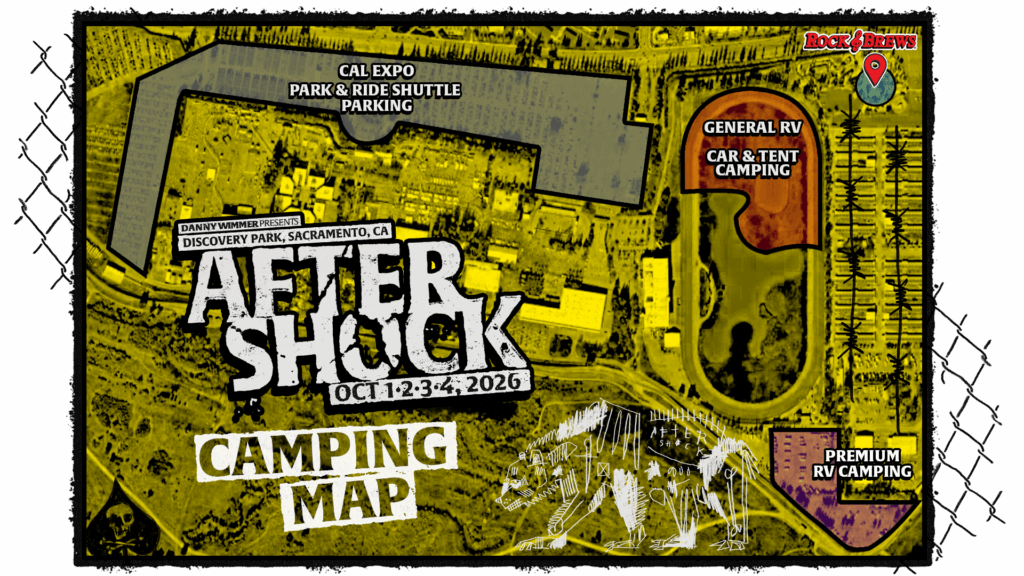The Aftershock campgrounds open at 12pm on Wednesday, September 30. Camping vehicles passes will be mailed in advance and will include directions to the camping toll booth entrance.